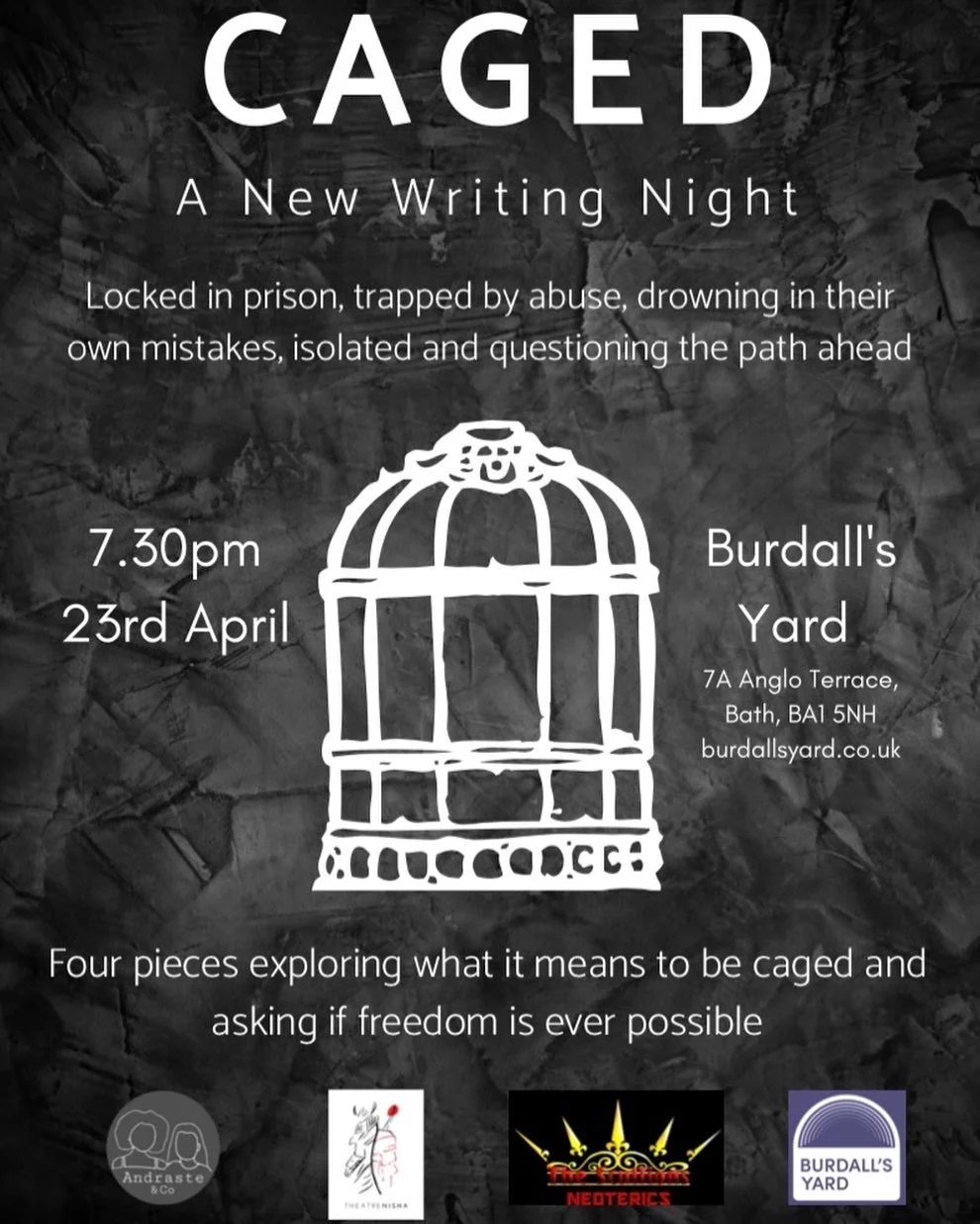Scratch night consisting of four 15-minute extracts, of pre-fringe shows, exploring what it means to be caged and asking if freedom is ever possible.