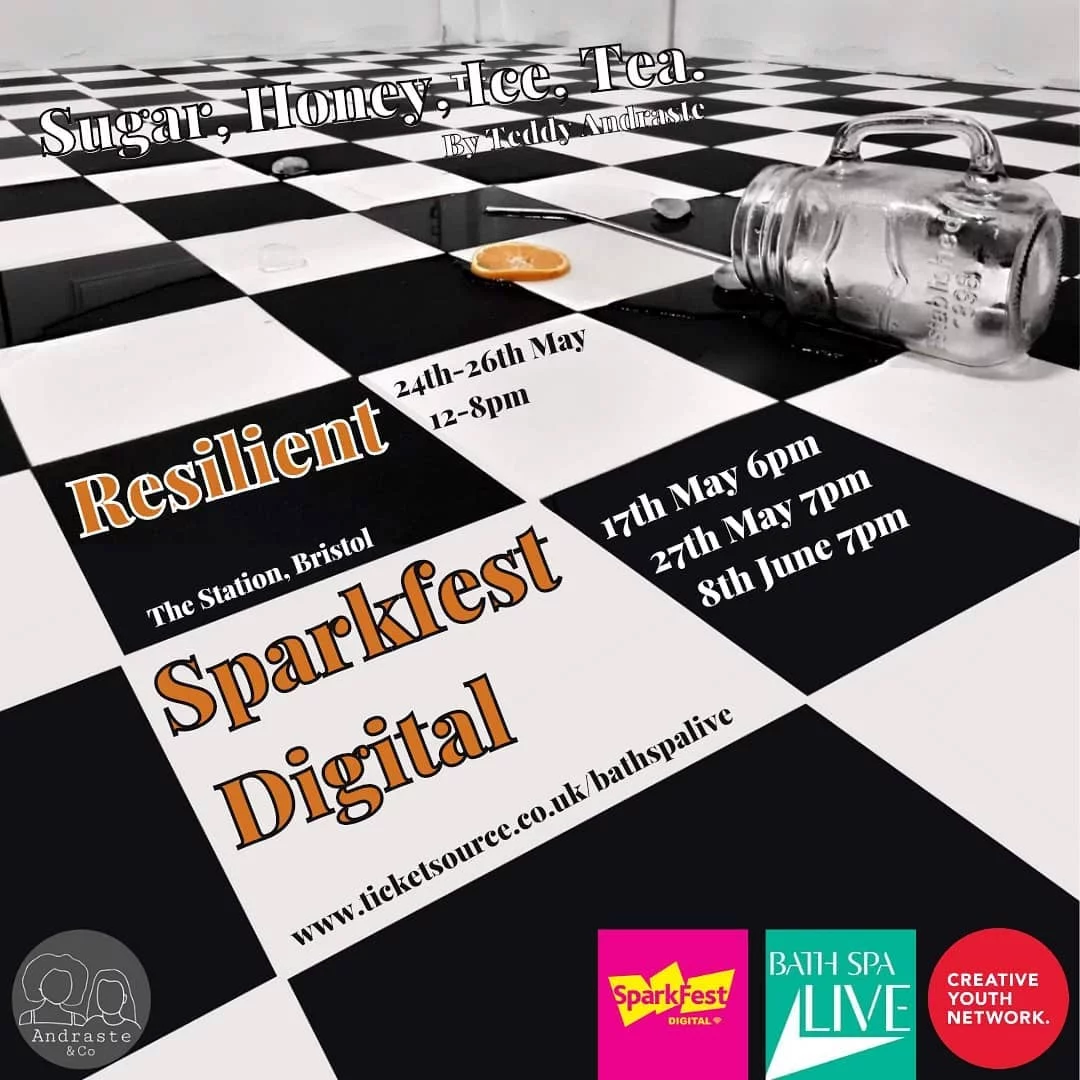 May 20: Originally showcased as a 15-minute extract as part of SparkFest Digital 2020. Both the writer, Teddy Andraste and producer, Billie-Jo Rainbird, received firsts from Bath Spa University regarding their production of and supporting essays for the extract.